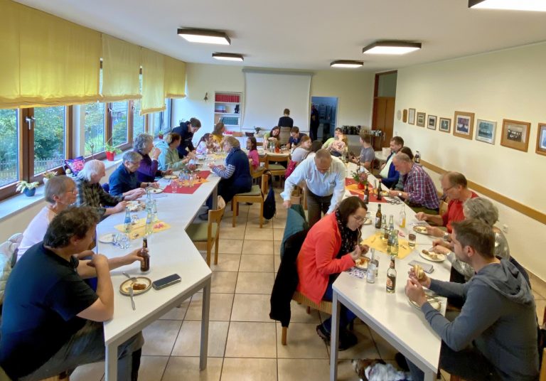 In Weyerbusch angekommen wurden vor dem Schlusssegen Bilanz gezogen, gefundene „Schätze“ betrachtet, allen HelferInnen gedankt und dann der ersten Pilger-Wandertag auf den „neuen Spuren“ mit einem Mittagessen abgeschlossen.